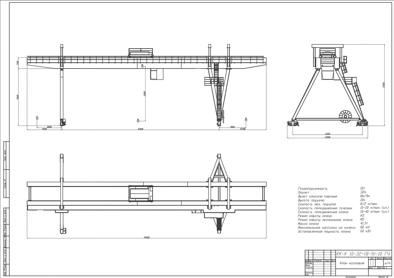 Козловой двухбалочный кран имеет коробчатое пролетное строение и включает следующие элементы:
